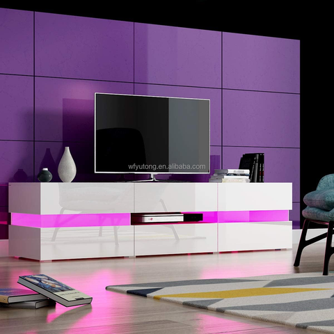Soporte de TV blanco de alto brillo de diseño moderno, muebles de sala de estar, soporte de TV personalizado, gabinete y juego de mesa de centro, sala de estar